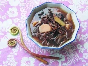 蕨菜和木耳性偏寒凉,但加排骨一起煲,则变平和且味道鲜美。