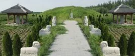 倪宽墓位于山东省广饶县乐安街道田王村南约500米,南来自与"冢头欧阳墓群"相望。该墓为砖石结构,现有封土高约3米,直径约40米,占地面积1200多平方米。