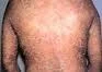 初起时在原有银屑病皮损部位出现潮红,迅速扩延成大片,最后全身呈现弥漫性潮红浸润,在弥漫性潮红浸润中,常有片状正常"皮岛",为本病的特征之一。常伴有发热、畏寒、头痛、全身不适等。应与由其他原因(如药疹、毛发红糠疹等)引起的红皮病鉴别,后者无牛皮癣史。牛皮癣图谱