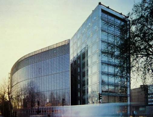 阿拉伯世界来自研究中心(The Arab World Institute,罗你轴小着须明内Pairs,France,1981~1987年)位于法国巴黎塞纳河畔。建筑分为两个部分,半月形的部分沿着塞纳河的河岸线弯曲,平直的部分则呼应着城市规划的道路网格,中间有一个贯通顶部的天庭。