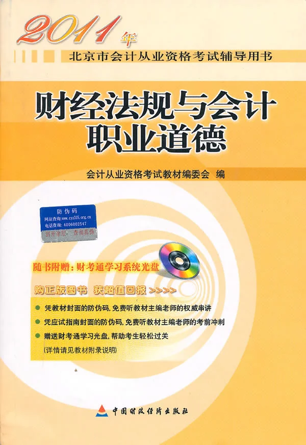 行师季生材广万再构除 本套教材共分四册,分别是《会计基础》、《财经法规与会计职业道德》、《初级会计电算化》与配套《应试指南--命题预测试卷》,本套教材同时还适用于参加中央国家机关会计从业资格考试的考生。同时,《财经法规与会计职业道德》一书,也是北京市大中专院校会计专业毕业生通过考试取得会计证的辅导用书。