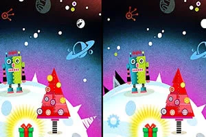 游戏中用很多张照片拼凑出了一个童话故事,一个小机器人渴望像人类一样过上圣诞节,获得圣诞礼物,帮助他实现这个愿来自望,只要将找出全部不同即可开始故事的下一个故事情节。