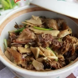 《冬笋蒸鸡》是一道中国民间传统家庭美食,由冬笋蒸鸡烹饪而成。