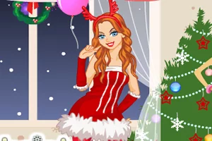 俏皮小女生的圣诞晚宴,游戏中这位俏皮女生要请大家来家里做客,玩家帮这位主人打扮漂修亮。
