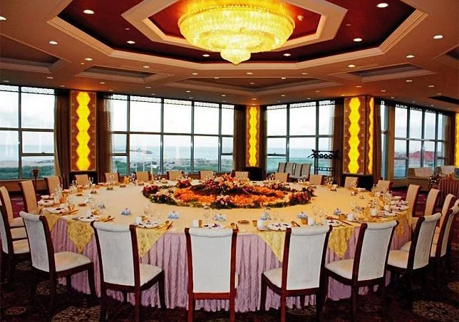 2.综合楼B座三楼泰山厅:此厅三面环海一面环山,景色优美,令人心旷神怡,有"日照第一桌"之称的46人一桌分餐及宴请。并可接待80人分桌高档宴请。
