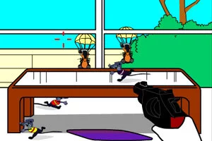 黑猫警长是铁面无私的,现在胆大的老鼠竟然公然跑到桌子上乱跑,有没有搞错!掏出黑猫警长的小手枪,消灭这些坏老鼠吧~子弹有限,注意节约!