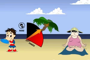 游戏中使用鼠标点击扇形区域控制投掷方向和力度。