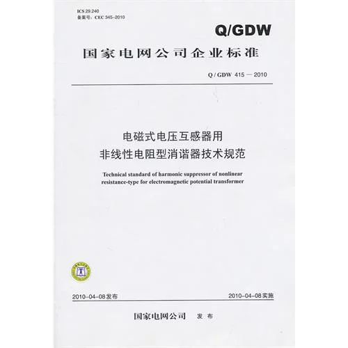 是2010年12月1日中国电力出版社出版的图书,作者是本社。本标准用于规定国家电网公司电磁式电压互感器用非线性电阻型消谐器的选型订货、出厂验收、包装运输、设备储存、交接预试等环节的技术原则。