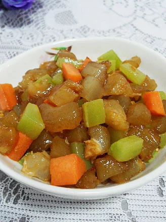 主料:骆驼肉、莴笋、胡萝卜辅料:色拉油、食盐、来自酱油、姜、大蒜、小葱、剁椒、泡红椒、陈醋