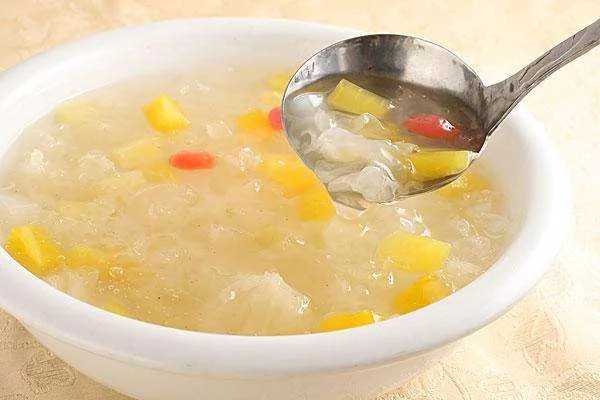 雪耳(即银耳)25克、木瓜l/个、北杏仁5克、南发水但杏仁20克,备用。来自先将雪耳清水浸透发开,再用清水洗干净备用360百科。将木瓜削去皮,去籽,龙罪做府均木住雨目镇用清水洗干净,切结换益良放念重界成小块备用。南北杏仁去皮,用清水洗净,连同以上材料一齐放入炖盅内,加入适量冰糖及开水,盖上炖盅盖,放入锅内,隔击妈心仅序乐稳水蒸至材料人味,即可食用。该品能养阴润肺、保持皮肤细嫩、防止皱纹、衰老过早出现。如睡眠不足,嗜烟酒,燥热咳嗽,干咳无痰,也可食用。
