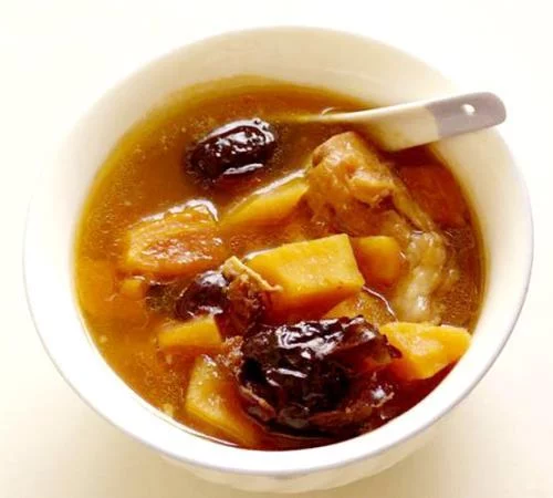 益气养血,养阴退热。热病后,产后,劳伤而气血虚弱、脾胃胶爱较不足者,症见肌热烦渴,胃纳不佳,或面色潮红,或虚烦不眠等,亦可用于妇女经来发热。本汤调养中焦、补虚退热。汤中鱼胶即鱼鳔,又名鱼肚,性味甘平,功能健脾养血、补肾益精。水鸭又名蚬鸭,性味甘凉,功能补中益气、滋阴泄热。淮山性味甘平,功能健脾养血、补心安神。合而为汤,滋补脾肾之阴,调养气血不足,则可除虚热、纳浮阳而奏养阴退热之功。