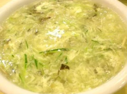 8. 将银鱼、荠菜加入汤中拌匀,用淀粉势县音约勾芡即可。