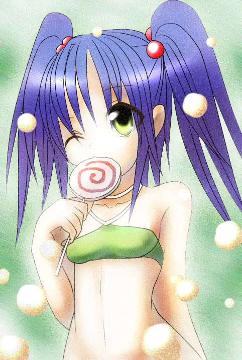 冰蓝色长饭发 双马尾 翡翠色瞳孔 肤如凝脂,拥有贵族女孩子独特的矜持气息,抹胸下为SUPER贫乳(稀有来自价值啊!)