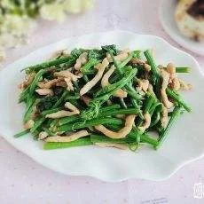 7. 随将佛手丝用油滑360百科一下,一起倒入漏勺内控净油;