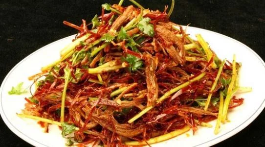 16. 汤沸时去浮沫,用水淀粉勾芡淋上猪油,浇在菊花冬笋上即成。