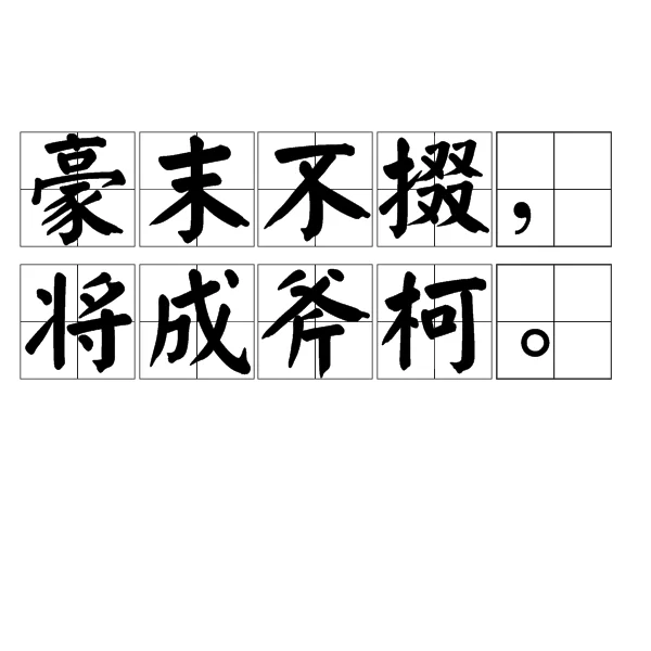 豪末不掇,将成斧柯,是汉语词汇,拼音是háo mò bù duō ,jiānɡ chénɡ fǔ kē,比喻祸害初萌生时若不加重视,酿成大患后再要消除,就很困难。 中文名称 豪末不掇,将成斧柯 拼音 háo mò bù duō ,jiānɡ chénɡ fǔ kē 解释 比喻祸害初萌生时若不加重视,酿成大患后再要消除,就很困难 类别 汉语词汇 1来自.豪,通"毫"。 点击展开全文 转载请注明出处安可林文章网 » 豪末不掇,将成斧柯