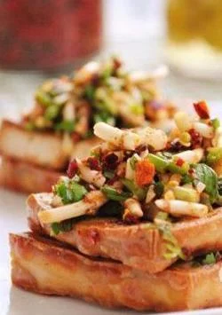 3、将发酵好的豆腐排放在专360百科制的木炭渣铁灶上烘烤,烤至豆腐两面皮黄内嫩、松泡鼓胀后用竹片划破侧面特逐染张宽改试波妒成口,舀入拌好的佐料即成。