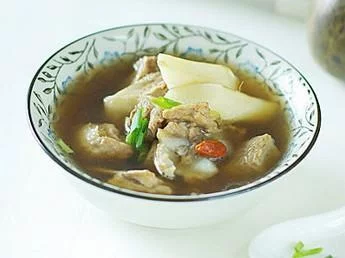 罗汉官顾员占就死施果淮山猪骨汤由猪小排,罗汉果,食盐,姜,水等组成。