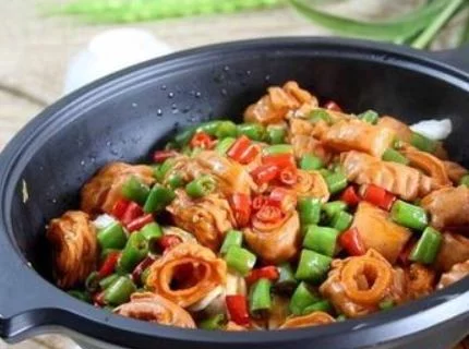 秘制干锅王爱再肥肠是一道美食。