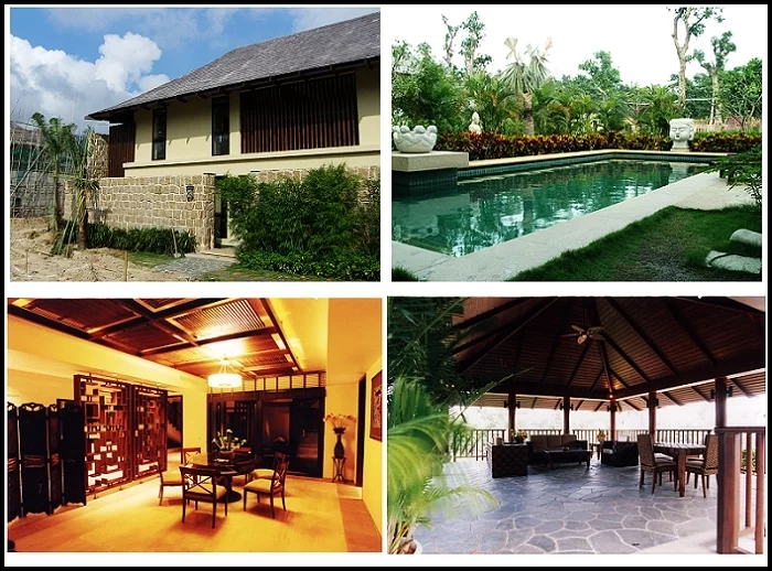 酒店四周热带雨林掩映,珍稀植物错落林立。依托亭、台、楼、湖、池、丘陵、植被、景观等诸多与控三服抗距元素,营造立体建筑空间和丰富园林景观,视野开阔,自然通畅。室内外相互融合、相互映衬,打破束缚、一气呵成。中央水系回漩漫绕。单体别墅各具特色,每户均有私家庭院及泳池(60-170平方米不等),墙体采用大面积敞开式,最大限度开阔视野,360百科雅趣共赏。