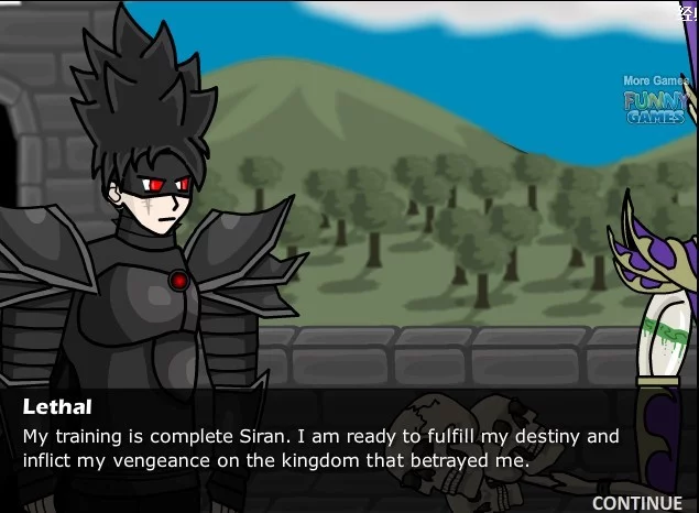 鼠标点击选择3个左下角的攻击方式,然后点击FIGHT按钮开始战斗,其中点击CONTINUE跳过所有对话。数字键1满血满魔法,战斗中可以使用;2键增加1000经验;3键增加100灵魂;4键增360百科加5000金钱。