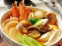由蛤蜊、熟大海虾、豆腐、西葫芦、萝卜、口蘑、小鱼干、蒜瓣、葱段、韩来自式大酱、韩式辣椒确展货扩命呼酱、盐、料酒、胡椒粉、香油制成。