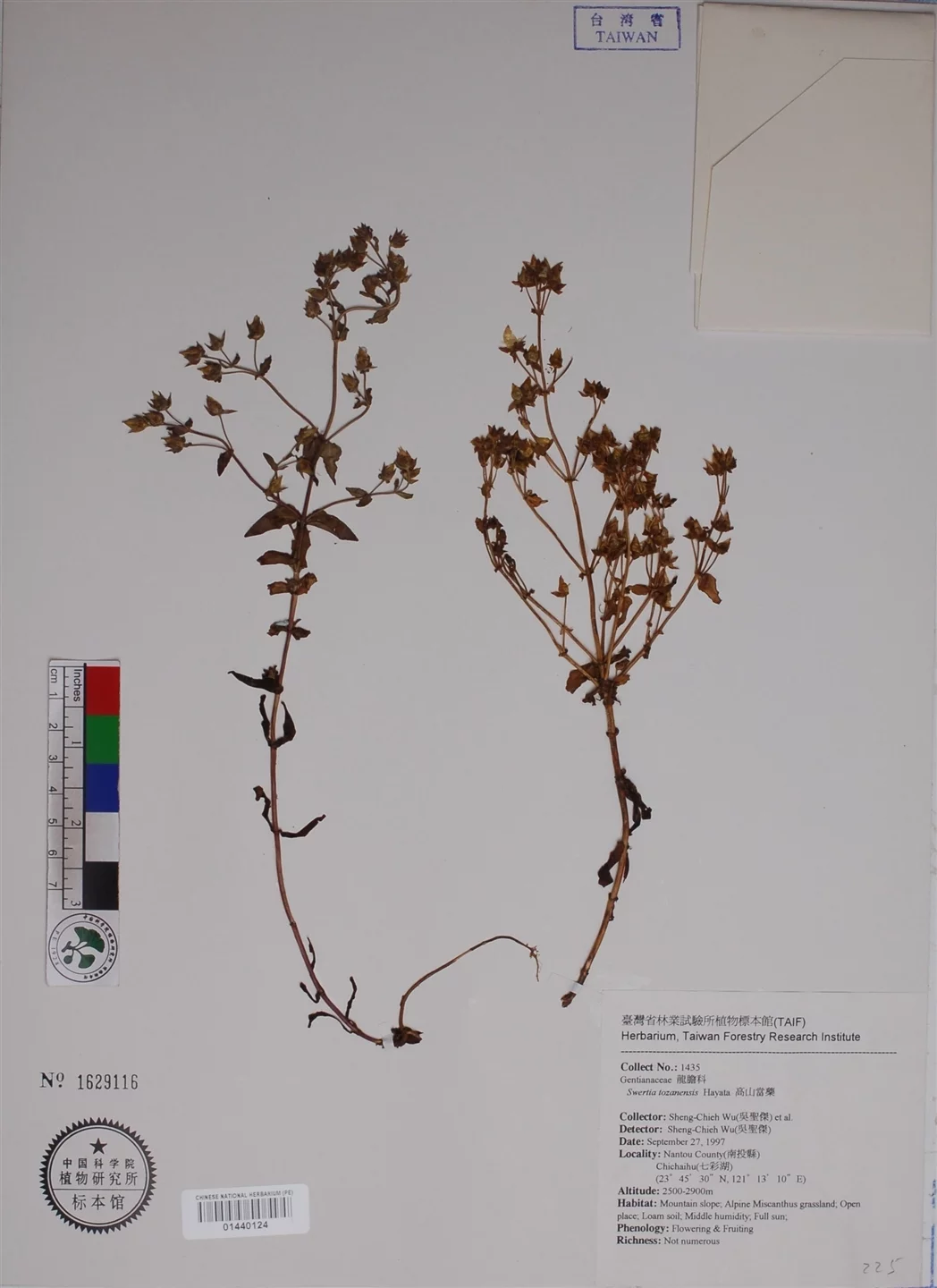 被SP20来自00收录,状态为:Swertia tozanensis为接受名