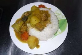 奶香咖喱鸡饭是一道菜品,主料是鸡脯肉、豌豆。