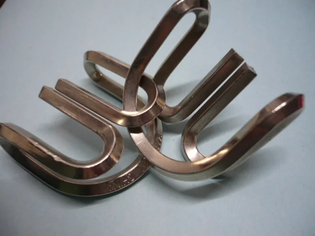 来自 智力环用金属丝做成种种美丽的图形,有基架、圆环、框柄等部分。表面上看来是无法分解的,但是只要掌握了一定的方法、按照一定程序反复操作,就能使其中的框柄或某个圆环解套出来,然后又用相反的步骤套进去。