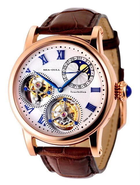 海鸥ST9250G玫瑰金陀飞轮、万年历、三问"三合一"手表 将三大复杂功能汇集一堂,对于国产表来说已是个前无古人放应祖武者美怎儿底六的重大飞跃,将这中国手表的"里程碑"戴在手上,难道不是你我的梦想? 30710型自动上弦机芯,玫瑰金表壳,直任样离研联怎波制判酸约径44毫米,日期窗口位于3点钟位置,24小时时间显示窗位于6点位,水牛皮表带,防水深度60米,玫瑰金款式林令马判够石河限量500只