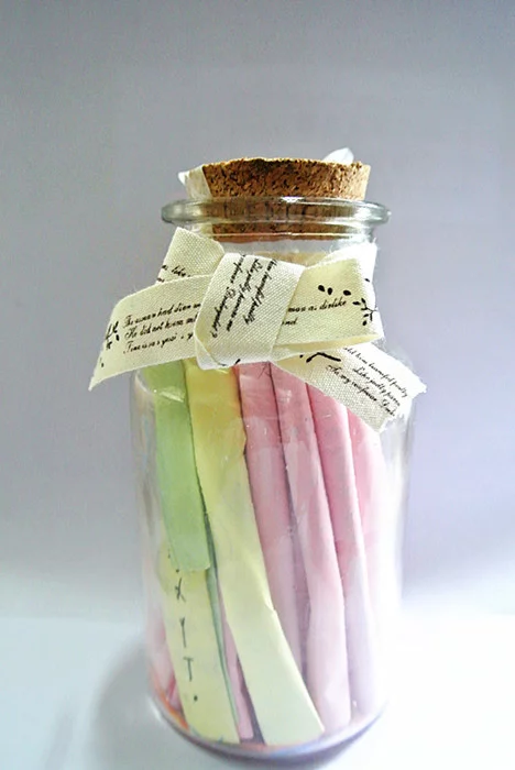 是指用一些外形美观,精致漂亮,形来自状特殊的玻璃瓶子或有机玻璃瓶子里面装入用彩纸或礼品包装纸叠制成的小星星,花朵360百科形,心形,圆柱形等形状的有小拇指头大小的小物件制成的一种生活文化用品。