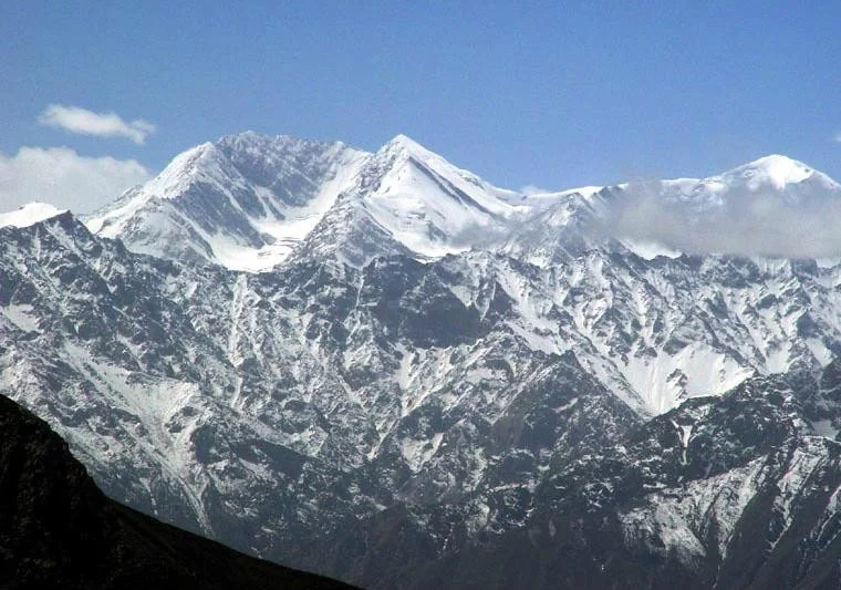 慕士山位于中国境内昆仑山中段,和田县与策勒县交界处。 海拔6来自638 米,它的南麓融入平均海拔超过4500米的青藏高原,而北麓则连接海拔1300 米左右的塔里木盆地。其南北坡的相对高度相差超过3000米,把昆仑山脉单面山的特性诠释得淋漓尽致。