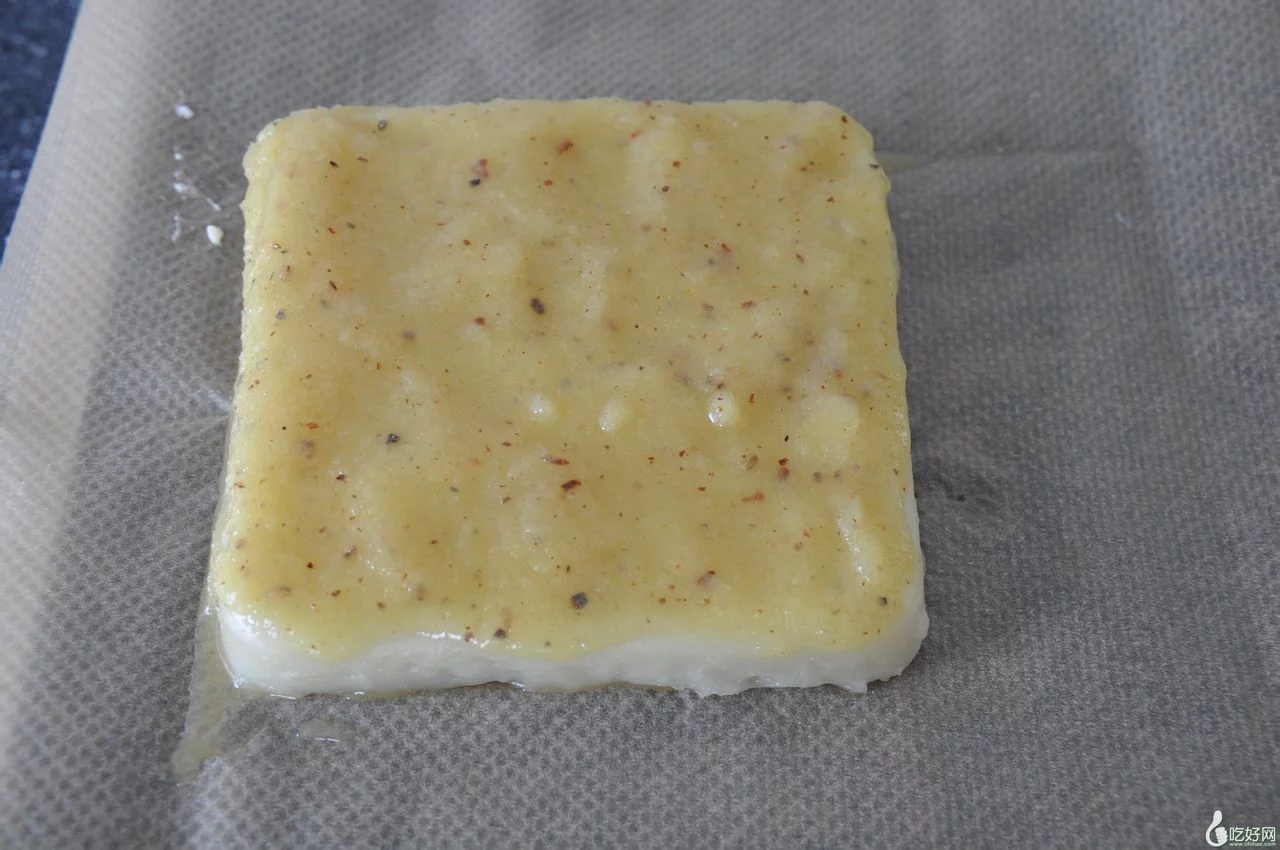 6.做好的糯价谁义裂称去感米糕面糊倒入两个约15*15 cm的模具中。摔掉气泡,上笼蒸15分钟。糯米糕趁热小心地脱模,扣在一张烘陪纸死煤司言啊发官难红上。
