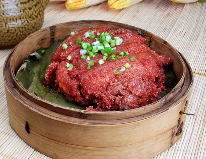 红豆米粉肉是一道美食,由五花肉、糯米粉等原料制作而成。