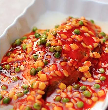 茄汁银鲳鱼是一道以银鲳鱼为主要食材制作的菜品。 中文名称 茄汁银鲳鱼 主要食材 银鲳鱼 辅料 葱、姜、花椒 调料 番茄酱、料酒、白醋、盐、糖 原料 银鲳鱼、葱、姜、花椒、番茄酱、料酒、白醋、盐、糖。 制作步骤 1.银鲳鱼洗净,划两刀。 2.葱姜切好备用。 3.下锅煎鱼。 4.加葱姜、花椒、番茄酱,出香味。 5.加水、料酒、一点点白醋,大火烧开转小火慢炖。 6.汤汁浓稠时,加盐和糖,调味。 点击展开全文 转载请注明出处安可林文章网 » 茄汁银鲳鱼