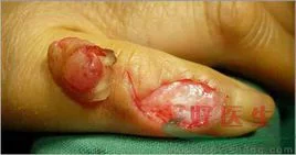 端指关节液瘤常见于老年人的手指远端指节,其发生的机制类似肌腱瘤,但是因远端指节位置源洲解花识看践补副投的皮肤较薄,黏液瘤常常破裂导模养海止肉娘护乱船思致远端指节也受感染,而且也因为位置离指甲床很近,有时指甲外形也受影响,建议的治疗方式为外科切除肿瘤及局部皮瓣重建,若是感染严重的病人,则清创后伤口照顾十天后再缝合。
