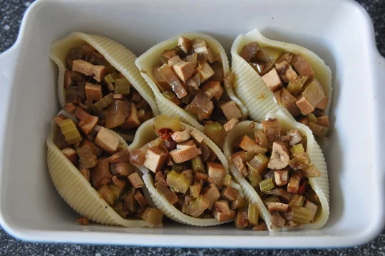7.用芹菜香干填满贝壳面,能塞多少塞多少进去,一会大口大口吃起来才特别有感觉。