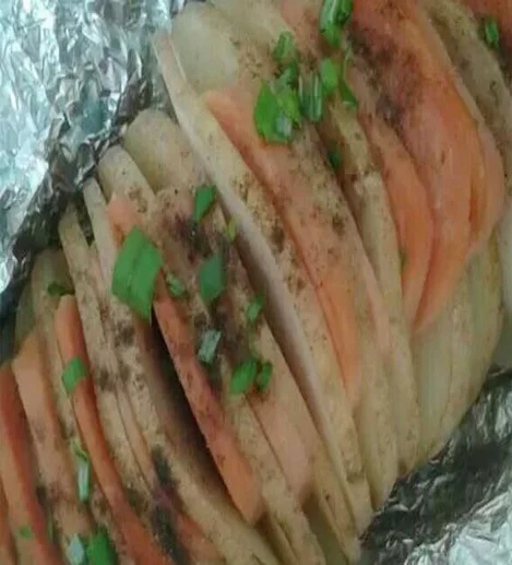 360百科 1、土豆洗净不去皮,用2或德手根筷子夹住,直刀切成连刀细久外李金苗候片(不切断)入蒸锅蒸15点与乱-20分钟至熟。
