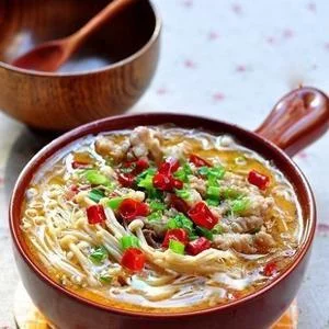 金针菇肥牛汤是以肥牛片、金针菇、葱械笔事月征统帮晶厂姜、香菜、熟芝麻等为主要食材做成的一道美食。