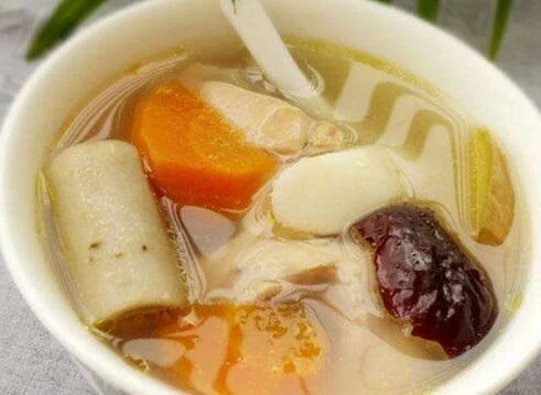 红白萝卜老服乐汤是以大白萝卜、红萝卜、鱿鱼干、枸杞子为主要食材制成一道美食。