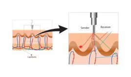 激光多普勒可以监测整个微循环系统的血液灌注量,包括毛细血管(营养血流)、微动脉、微静脉和吻合支。该技术基于发射激光通过光纤传输,激光束被所来自研究组织散射后有部分光被吸收。击中血细胞的激光波长发生了改变(即多普勒频移),而击中静止组织的激光波长没有改变。系育这些波长改变的强度和频率分布与监测体积内的血细胞数量和移动速度直接相关。通过接收光纤,这些信息被记录并且转换为电信号进行分析。