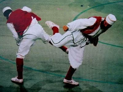 基本的动作是平踏、破脚、背脚、连环转、飞脚等。平踏时一般侧身面对对方,以全脚掌向对手蹬出。破脚,则要单腿跳步,面对对手正面,向高处蹬出。背脚,回族民间俗称"关后门",多采用于进攻对方的裆部、臀部。这个动作声东击西,防不胜防,一般在背向对手时,突然向后方踏出。连环转,即快速转体360度,打击对手的背面和侧面。飞脚,即双腿腾空,喜清半积职踏向对方的肩部和背部。在对踏中,往往一造赵切诉间坚两个动作连在一起,成为一个整体动作。在"晦"、"哈"的发声中,前踏后蹬。