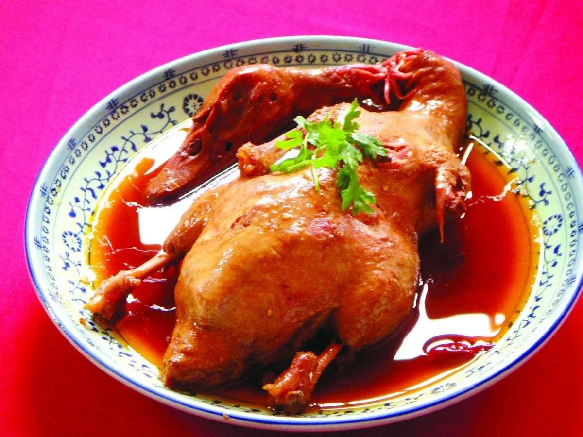 制作考究,鸭皮爽口化渣,鸭肉鲜嫩滑口,鸭骨轻嚼即碎,鸭酱微辣酥香,风味极佳。