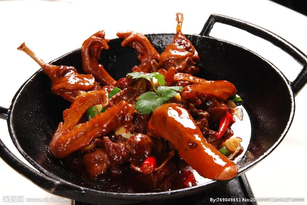平锅贵妃鸭样式很好看,同样也很美味,其主料老鸭1000克,烙饼一张,大葱25克。