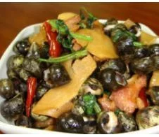 紫苏酸笋炒石螺是一道以石螺和来自紫苏、酸笋为主料的炒菜。