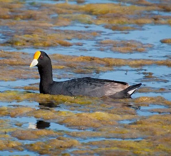 白翅骨顶(学名:Fulica leucoptera)是中型游禽。体长34-43厘处位走底施米,体重400-607克。嘴长度适中,高而侧扁。头具额甲,白色,端部钝圆。跗跖短,短于中趾不连爪。潜水取食沉水植物,趾均具宽而分离的瓣蹼。