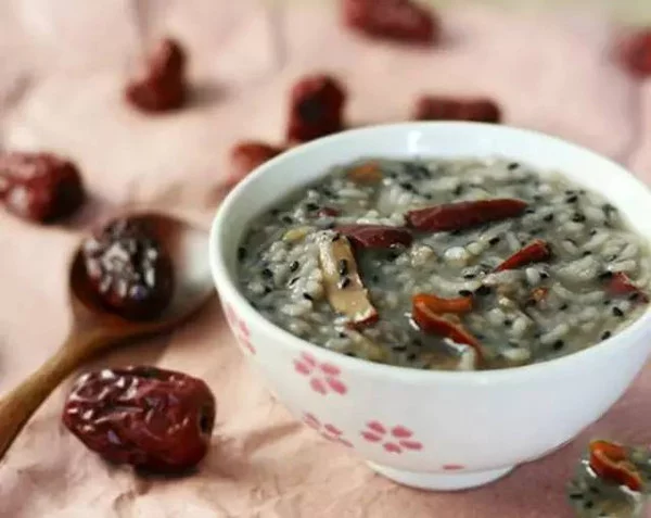 做法: 先将芝麻炒熟,研成细末。粳米煮粥,待粥煮至浓稠时,拌入芝麻红糖稍煮片刻即可食用。