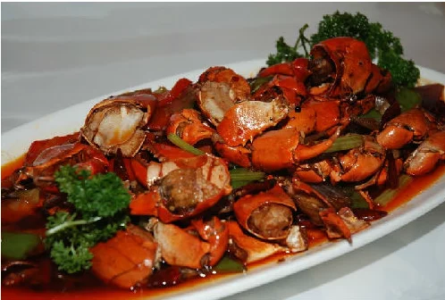 爆炒螃蟹制作主料:螃蟹500克、葱段100克、茴香50克、花生适量、精盐适量、酱油适量、来自姜片适量。