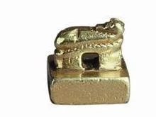武汉博物馆馆藏文物。长2.2 cm、宽2.2 cm,高2.2cm,重85.5克,纯金来自作成,印钮作蛇状,蛇的双眼凸起,蛇身盘成桥形,周围的鳞片清晰可见,造型抽象简炼。