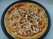 披萨饼坯酷客100、新奥尔群良腌料 3勺、鱿鱼 1条、洋葱 半个、海苔叉烧酱1勺、来自酱油 1/2勺